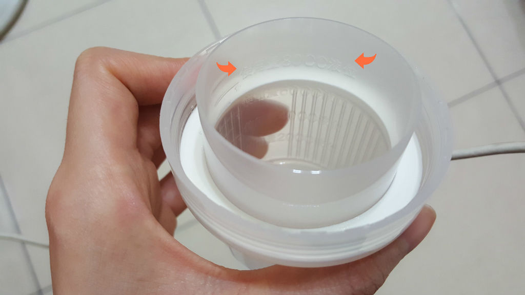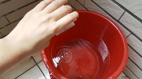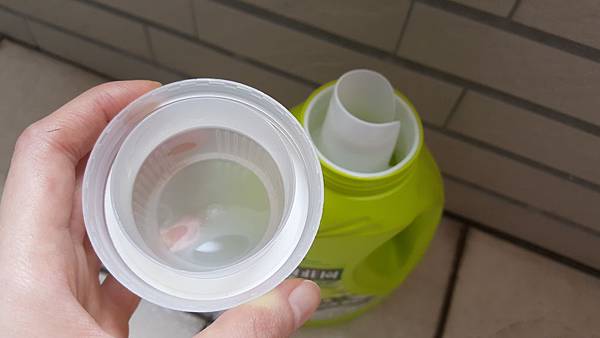 在半桶(約一加侖)清水裡,倒入約60cc(瓶蓋上也有刻度標示)